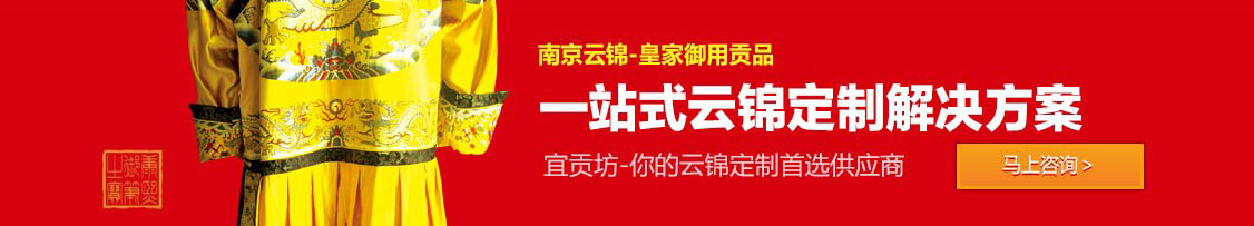 南京宜貢坊云錦文化科技有限公司成立于二OO一年,場地面積10000㎡,致力于做中國知名的云錦,宜貢坊云錦文化科技有限公司座落于江寧開發(fā)區。做為江蘇云錦文化科技品牌之一,南京宜貢坊擁有雄厚的技術力量和實力,現有大型傳統花木樓織機幾十臺,織造師、研究設計人員數百人。公司擁有直屬北京、深圳、上海辦事處和近千家緊密經銷商、合作商;產品在南京中央商場、新百、上海八百伴、上海友誼商場,泰州金鷹等全國多家大型商場均有專柜。